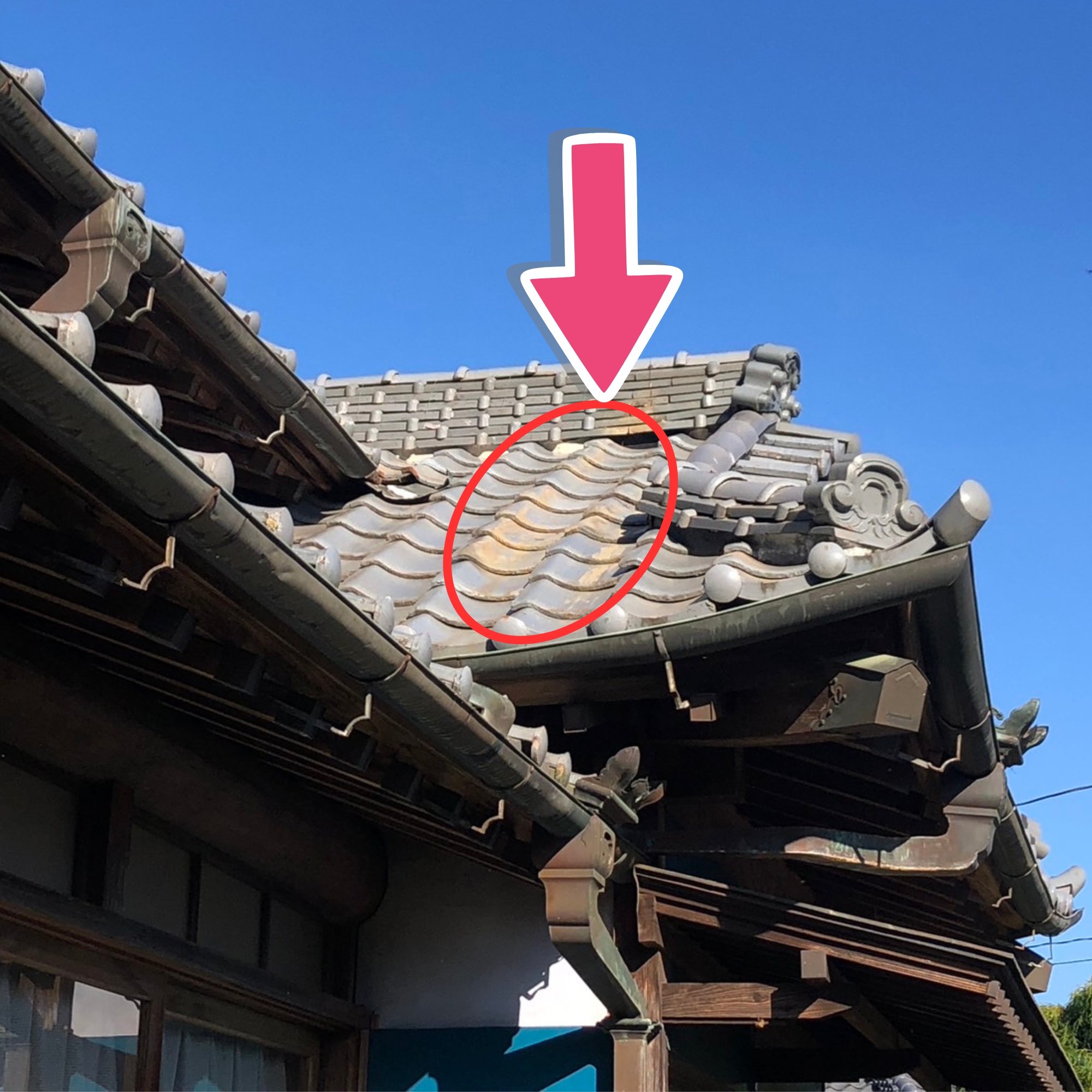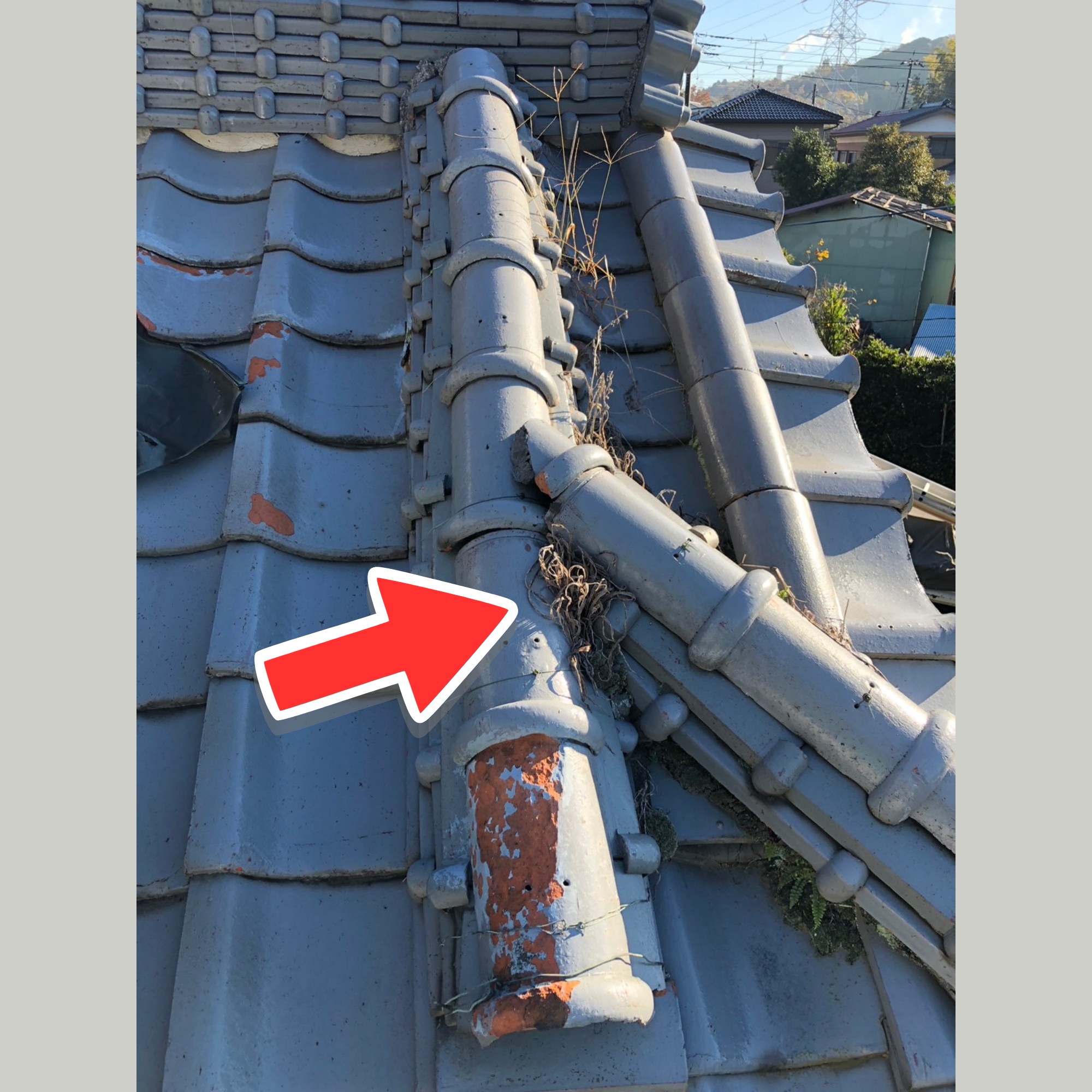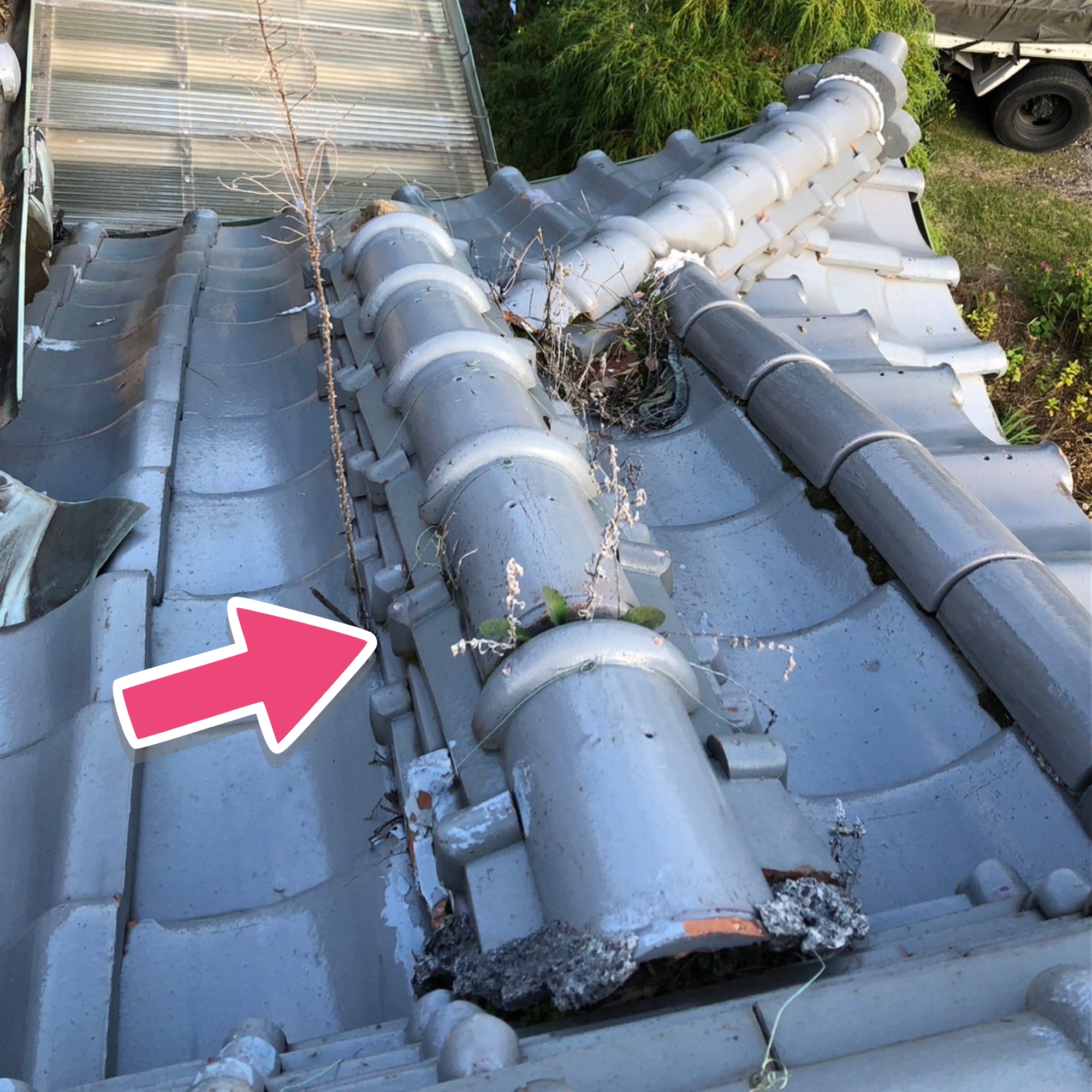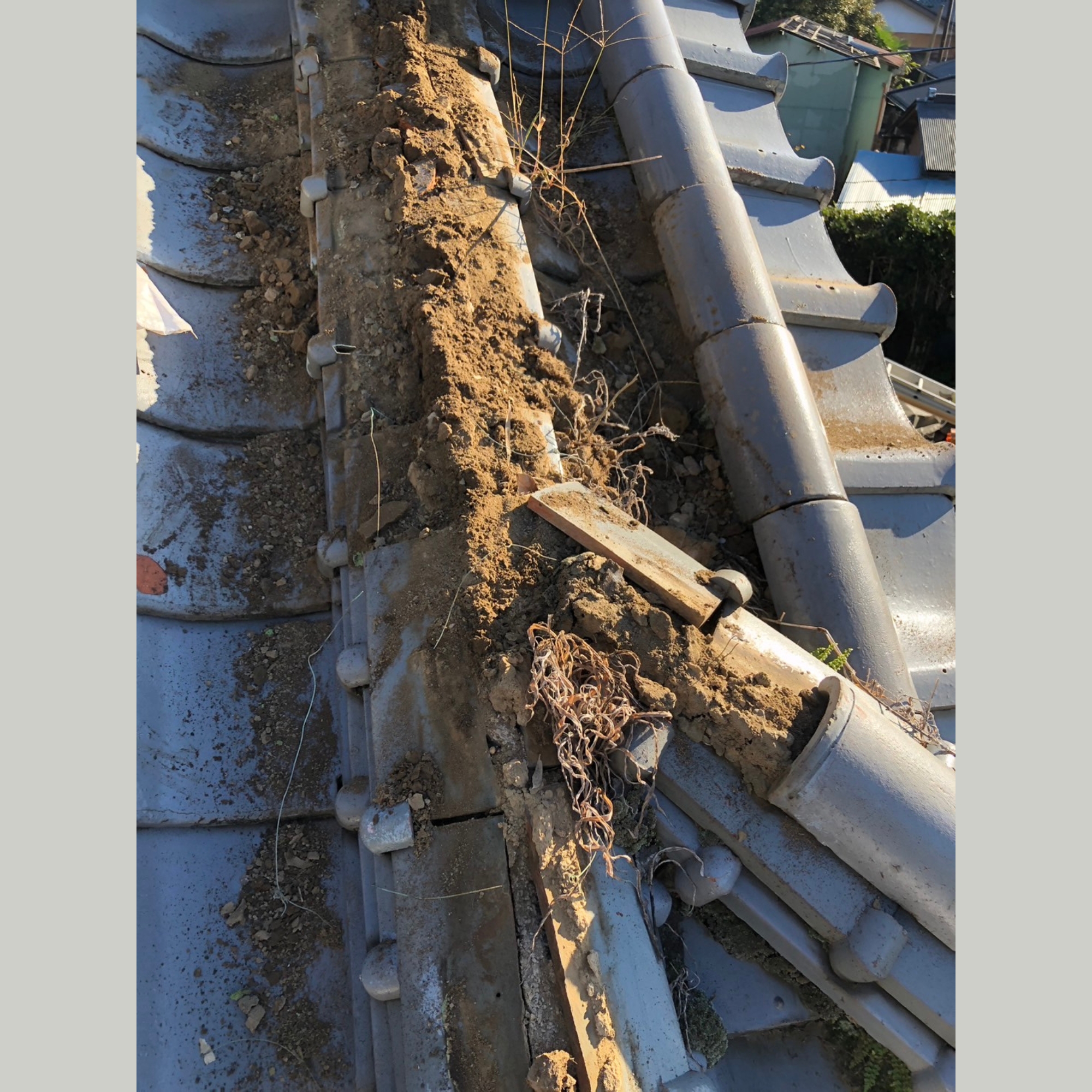 草の根っこや崩れたのし瓦のせいで